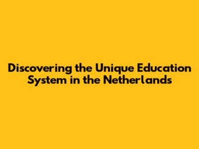 Discovering The Unique Education System In The Netherlands